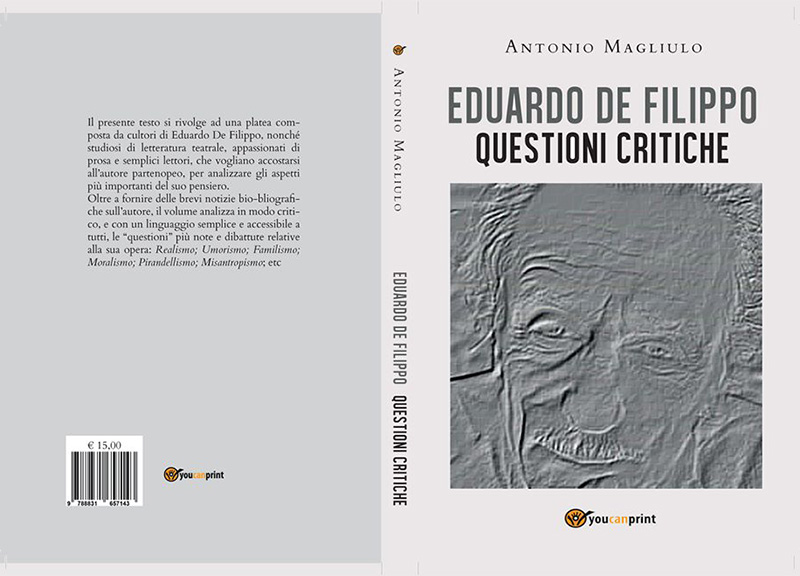 Appuntamento con l’Arte 2 marzo 2020 – presentazione del libro “Edoardo De Filippo. Questioni Critiche” di Antonio Magliulo edito da Youcanprint. Il testo si rivolge a tutti quei lettori che sono interessati all’opera di Eduardo. Esso analizza in maniera critica e con un linguaggio lineare e comprensibile a tutti le “questioni” più note e dibattute sorte intorno all’artista partenopeo e alle sue commedie, cioè: realismo, umorismo, familismo, moralismo, pirandellismo, misantropismo, etc. col proposito di contribuire a farvi nuova luce.