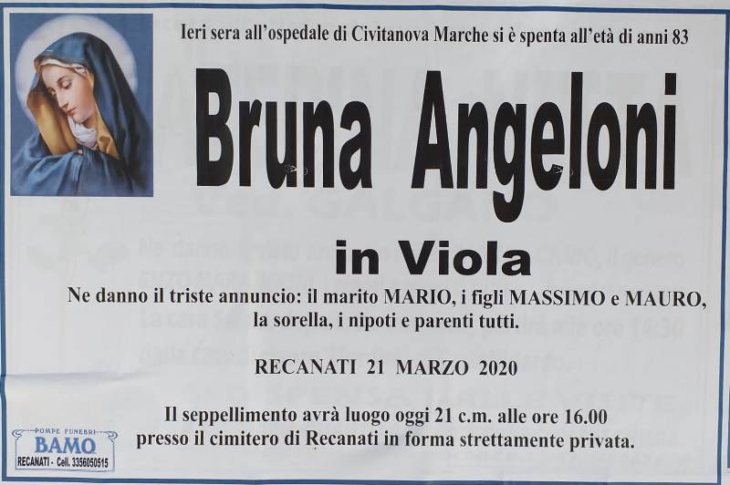 necrologio Bruna Angeloni in Viola