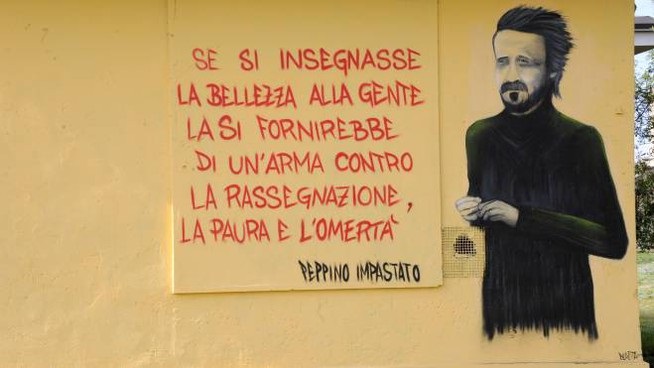 Concludo l’articolo, per ricordare Peppino Impastato, un eroe che ha combattuto contro uno dei mali della nostra Italia, pagando con la propria vita, con uno stralcio della canzone “cento passi” dei Modena City Ramblers “…. Nato nella terra dei vespri e degli aranci, tra Cinisi e Palermo parlava alla sua radio, negli occhi si leggeva la voglia di cambiare, la voglia di giustizia che lo portò a lottare, aveva un cognome ingombrante e rispettato, di certo in quell’ambiente da lui poco onorato, si sa dove si nasce ma non come si muore e non se un ideale ti porterà dolore….”