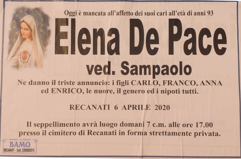 necrologio Elena de Pace