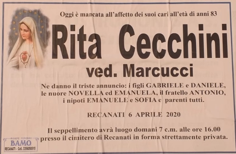 Home » E’ morta Rita Cecchini ved. Marcucci