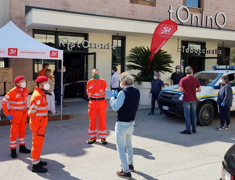 L’operazione, coordinata sul posto dal Sindaco Antonio Bravi e dagli assessori Mirco Scorcelli (protezione civile), Paola Nicolini (servizi sociali) e dal Presidente del Consiglio Comunale Tania Paoltroni, è stata resa possibile  grazie a Marco Menghini, titolare del ristorante Tonino, che ha coinvolto gli operatori commerciali di  Si con te di Villa Teresa e de Le Grazie, panifici Giorgini e Donnini&Manzotti, Pastificio D’Andrea, azienda agricola “i tre filari”, il negozio di prodotti alimentari marchigiani We Marche e Bauli.