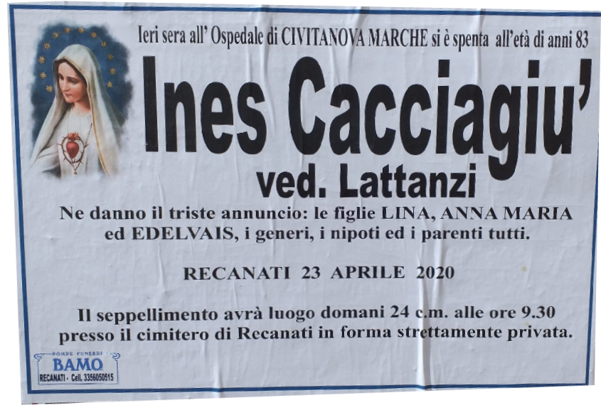 E’ deceduta Ines Cacciagiù ved Lattanzi