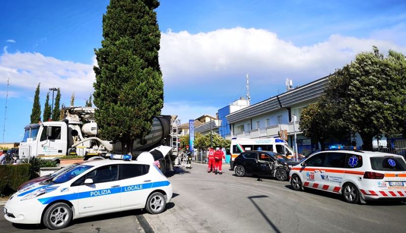 Tanti i danni ai mezzi ma fortunatamente nulla di grave per le persone coinvolte nell’incidente che è avvenuto oggi pomeriggio verso le 16.30 in via Cupa Madonna in Varano, nei pressi del distributore Q8 a Recanati. Un’auto, una Citroen DSA, che procedeva in direzione del centro cittadino, si è trovata di fronte improvvisamente una betoniera che, in retromarcia, usciva a destra da un cantiere edile. Per evitare di scontrarsi l’auto, dopo essere stata, sembra, urtata dal pesante mezzo, è finita contro un muretto posto nella parte sinistra della carreggiata.