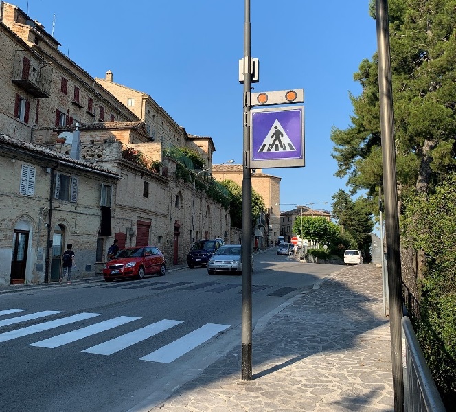 L’attraversamento è dotato di illuminazione led che punta direttamente sulla carreggiata per dare maggiore visibilità al pedone in transito sulle strisce, mentre la segnaletica luminosa permette agli automobilisti di avvistare con largo anticipo la presenza dell’attraversamento.