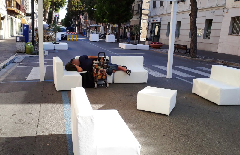 Porto Recanati cambia volto e cerca di presentarsi a turisti e residenti nella sua veste migliore, più accogliente possibile e fra le tante proposte, oltre alla nuova illuminazione estiva di piazza F.lli Brancondi, delle Rimembranze e del corso, il via alla ztl con il cambio della viabilità e la rivoluzione dei parcheggi, c’è stata l’istallazione di alcuni piccoli salottini lungo il corso particolarmente apprezzata come si vede anche dalla foto.