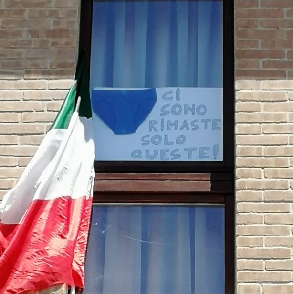 Incredibile, un recanatese costretto in ospedale per il Covid è stato chiamato a pagare il ricovero. Lui, per protesta, ha affisso fuori dalla finestra della sua casa un paio di mutande con accanto la scritta “ci sono rimaste solo queste”.