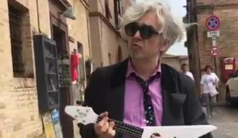 Una giacca stile ‘800 addosso, occhiali da sole e un ukulele fra le mani: a sorpresa questa mattina a passeggiare per le vie di Recanati è comparso Morgan che da via Roma a casa Leopardi ha filmato e postato su facebook la sua passeggiata. Come un antico menestrello ha allestito un inedito spettacolo: “Morgan matto e disperatissimo porta il signor G dal sommo G” giocando sulla stessa iniziale del nome di Leopardi e di Gaber del quale ha suonato e cantato camminando la canzone “Benvenuto il luogo dove” dove è lo stesso Gaber a citare Recanati: “Benvenuto il luogo lungo e stretto con attorno il mare, pieno di regioni come dovrebbero essere tutte le nazioni, un luogo pieno di dialetti strani, di sentimenti quasi sconosciuti, dove i poeti sono nati tutti a Recanati”.
