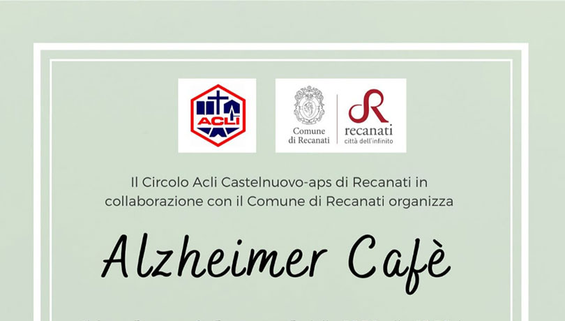 Il Circolo ACLI Castelnuovo-aps di Recanati in collaborazione con il Comune di Recanati organizza “Alzheimer Cafè”. Il lunedì, mercoledì e venerdì dalle 16.30 alle 18.30 le persone con diagnosi di demenza sono invitate a partecipare ad attività ludico-creative e motorie (con volontari, assistenti/educatori, operatore del benessere) e i familiari possono trovare uno spazio di accoglienza, confronto e scambio di informazioni (il lunedì con supporto psicologico!)