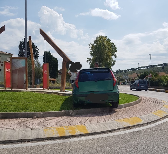 Vedete cosa significa intanto non avere una segnaletica orizzontale visibile nelle zone periferiche? La conducente poi si è probabilmente distratta arrivando nei pressi della rotatoria e perciò non ha rallentato. Come non fanno davanti alla Pia Casa Hermes (da un lato e dall’altro) e in via delle Brecce, da sempre pista da corsa per motociclette e autoveicoli o in via San Francesco zona Palacongressi. A proposito della foto: è una Fiat Punto.