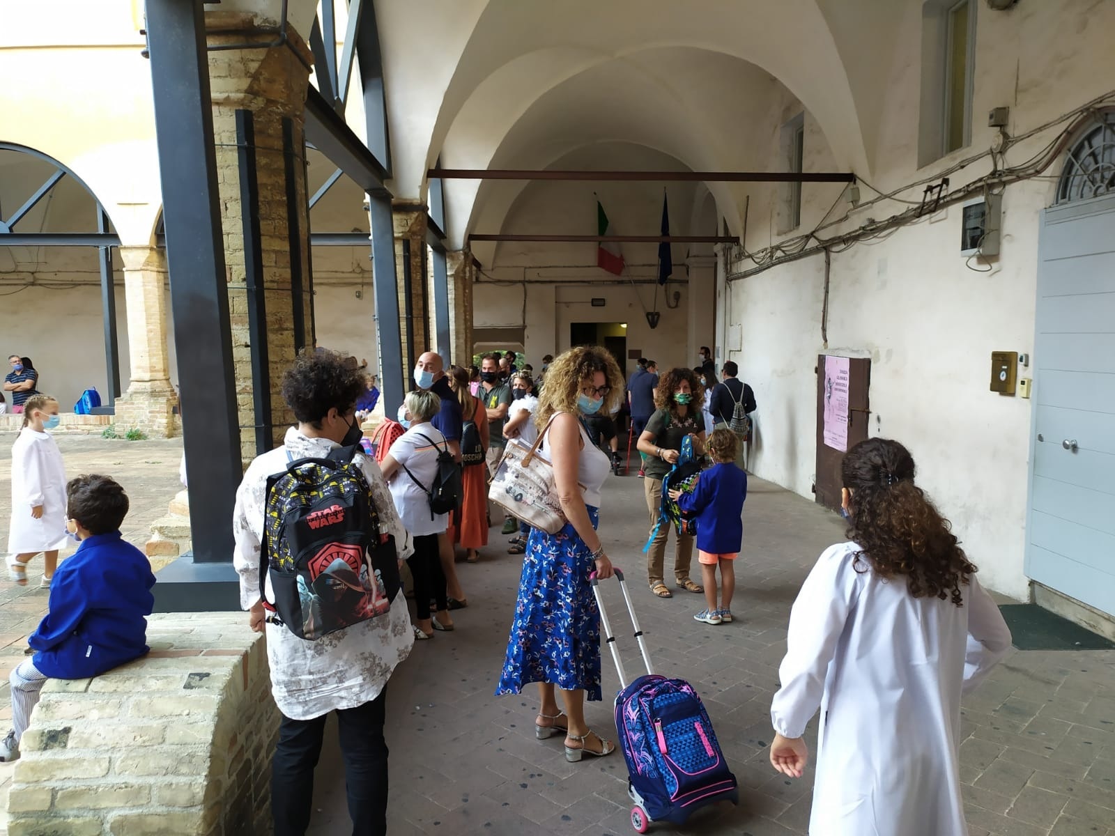 Le scuole recanatesi, come da programma, hanno aperto questa mattina in modo regolare e tutti gli studenti, dai più piccoli ai più grandi, con accessi scaglionati o ingressi diversi, sono entrati e hanno trovato posto in banchi singoli e con le mascherine sul volto, malgrado il gran caldo che faceva.