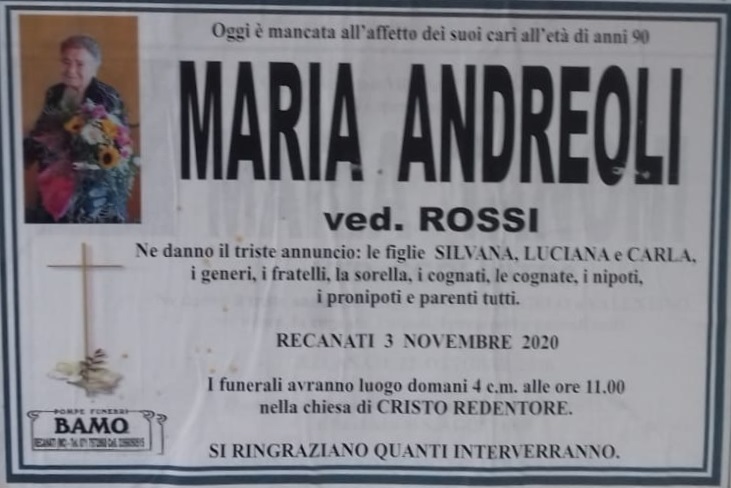 E’ morta Andreoli Maria ved. Rossi