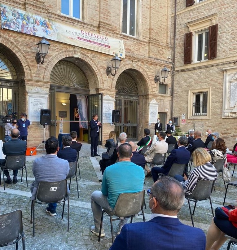 Nemmeno lo stesso Raffaello le ha mai potute vedere così: tutte insieme, una accanto all’altra. Sono ben 48 le opere del Divin Pittore che si possono ammirare nell’esposizione ‘Raffaello, una mostra impossibile’, inaugurata questo pomeriggio (martedì 1 giugno, ndr) a Loreto dopo un’attesa di quasi sette mesi dovuta all’emergenza pandemica. Un’esposizione che, a dispetto del titolo scelto, diventa possibile, così come lo diventa l’idea di una ripresa della vita sociale e culturale della città mariana in questa stagione estiva appena iniziata. “Con questo evento di altissimo spessore culturale – sottolinea il sindaco Moreno Pieroni – vogliamo dare un segnale concreto di ritorno graduale alla normalità. È un onore ed è anche una grande emozione per noi ospitare questa mostra, promossa dalla Regione Marche, che permetterà ai cittadini e anche a tanti turisti di ammirare i capolavori di Raffaello riletti in questa chiave così particolare”.
