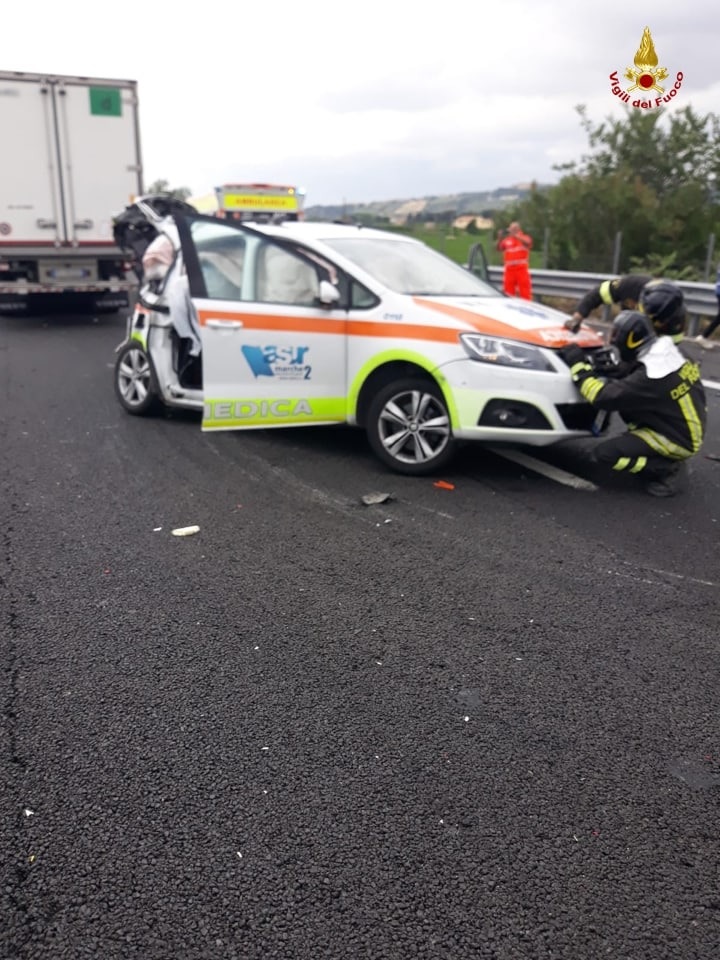L’automedica, stando a una prima ricostruzione, non sarebbe stata vista dal camionista. L’equipaggio dell’automedica miracolosamente si trovava all’interno dell’ambulanza per assistere i passeggi del furgone che si era ribaltato, quindi all’interno dell’automedica del 118 non c’era nessuno quando è stata urtata dal Tir, mandandola completamente distrutta.
