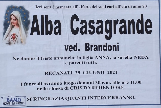 Home » E’ morta Alba Casagrande ved. Brandoni