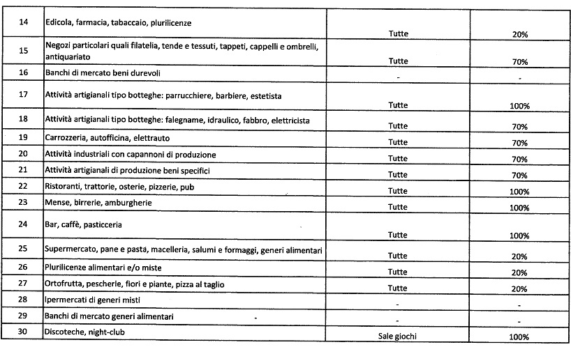 La misura sarà approvata in consiglio comunale questa sera (martedì 29 giugno, ndr) e, nello specifico, prevede tre fasce di riduzione della quota variabile della Tari: del 100 per cento, del 70 per cento e del 20 per cento. “Il risparmio, per un’azienda o una semplice Partita Iva, può essere notevole – dice l’Assessore al Bilancio Giovanni Tanfani – se si tratta di una realtà in fascia 100 lo sconto in fattura può raggiungere un range del 55/60%. In pratica, se consideriamo un bar di 100 mq che in condizioni normali pagherebbe circa 1030 euro, ne arriverà a pagare 420”. A seguire, l’appartenenza in fascia 70 per cento prevede una riduzione del 35/40 per cento e quella in fascia 20 per cento comporterà un risparmio in bolletta del 10/15 per cento. Le fasce di agevolazione sono state individuate con il criterio della maggiore o minore penalizzazione in seguito alla pandemia, incrociando i dati del calo fatturati e delle chiusure forzate dovute ai vari Dpcm: il 100 per cento della riduzione spetta a tutte quelle attività collegate con il turismo, la ristorazione, attività sportive, mentre a scendere troviamo progressivamente gli esercizi meno penalizzati. Escluse dai benefici banche, case di cura e ipermercati che non hanno mai cessato la loro attività. Altro aspetto significativo è che la riduzione sarà applicata d’ufficio: non occorrerà fare alcuna domanda, né recarsi agli sportelli, in quanto l’agevolazione sarà direttamente conteggiata e scalata in bolletta a seconda della fascia commerciale di appartenenza. Ugualmente, in questa fase di particolare difficoltà, il requisito della regolarità Durc non sarà richiesto.