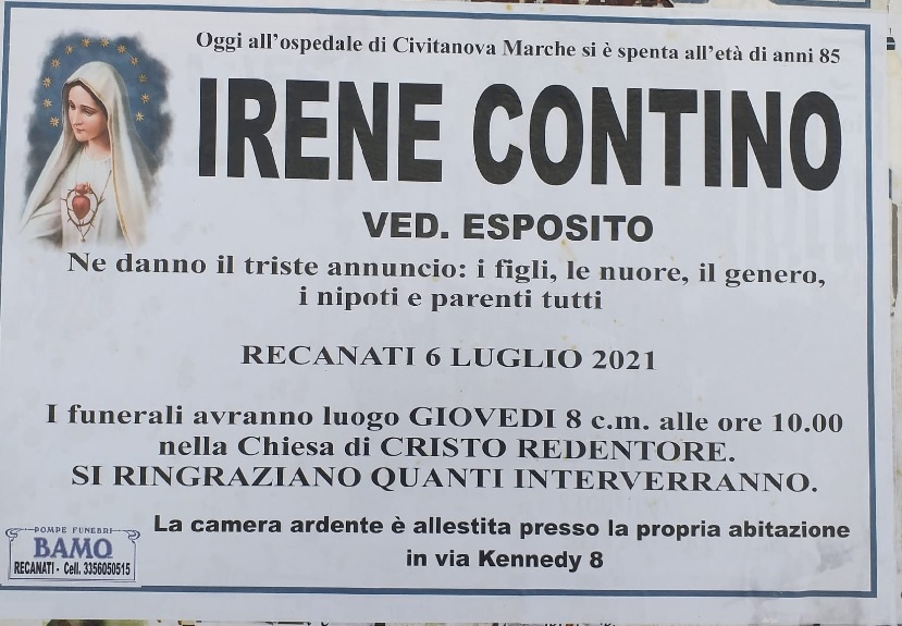 E’ morta Irene Contino vedova Esposito