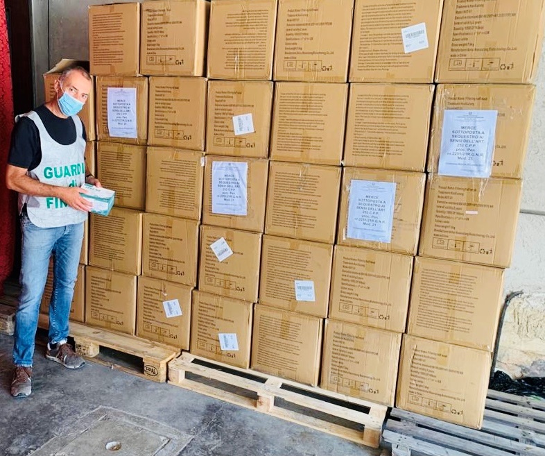 Le ricerche condotte hanno così permesso di rinvenire complessivamente ulteriori 35.000 mascherine con le medesime caratteristiche, anch’esse sottoposte a sequestro.