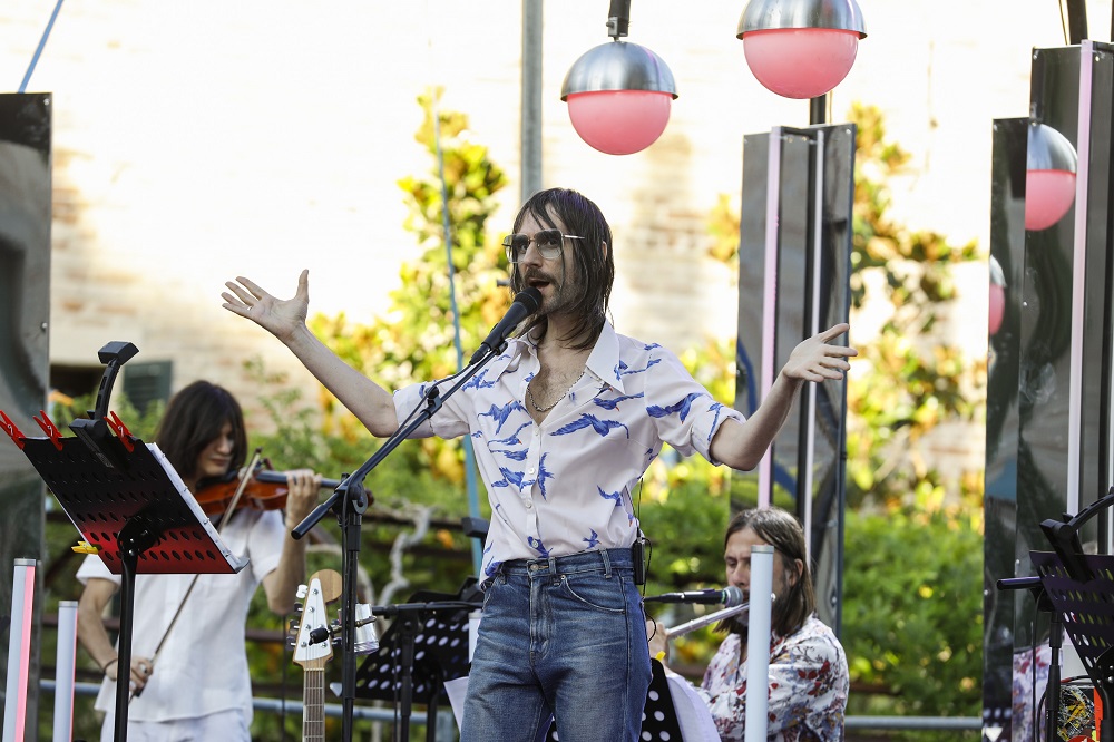 Ad accompagnare l’artista sul palco la perfetta sintonia dell’ensemble composta da Stefano Pilia alle chitarre, Angelo Trabace al pianoforte, Alessandro Trabace al violino, Zevi Bordovach mellotron e tastiere, Enrico Gabrielli flauto e sassofono e Sebastiano Di Gennaro alle percussioni.