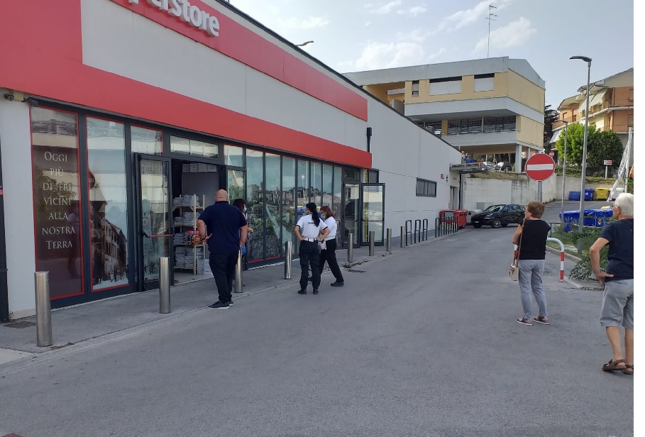 Nel frattempo sono state aperte tutte le porte del supermercato per far uscire il fumo e disperdere il forte e acre odore che c’era all’interno del negozio.