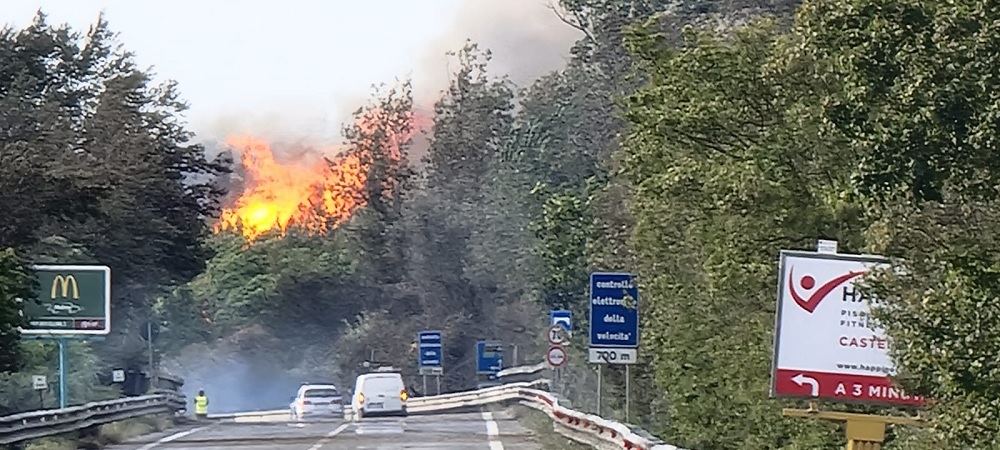 Allertati anche i canadair mentre la Capitaneria di Porto è stata contattata per liberare lo spazio di mare di fronte alle fiamme.