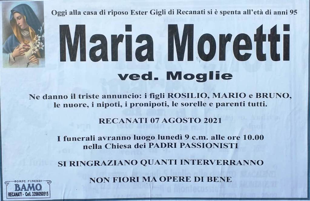 E’ morta Maria Moretti ved. Moglie