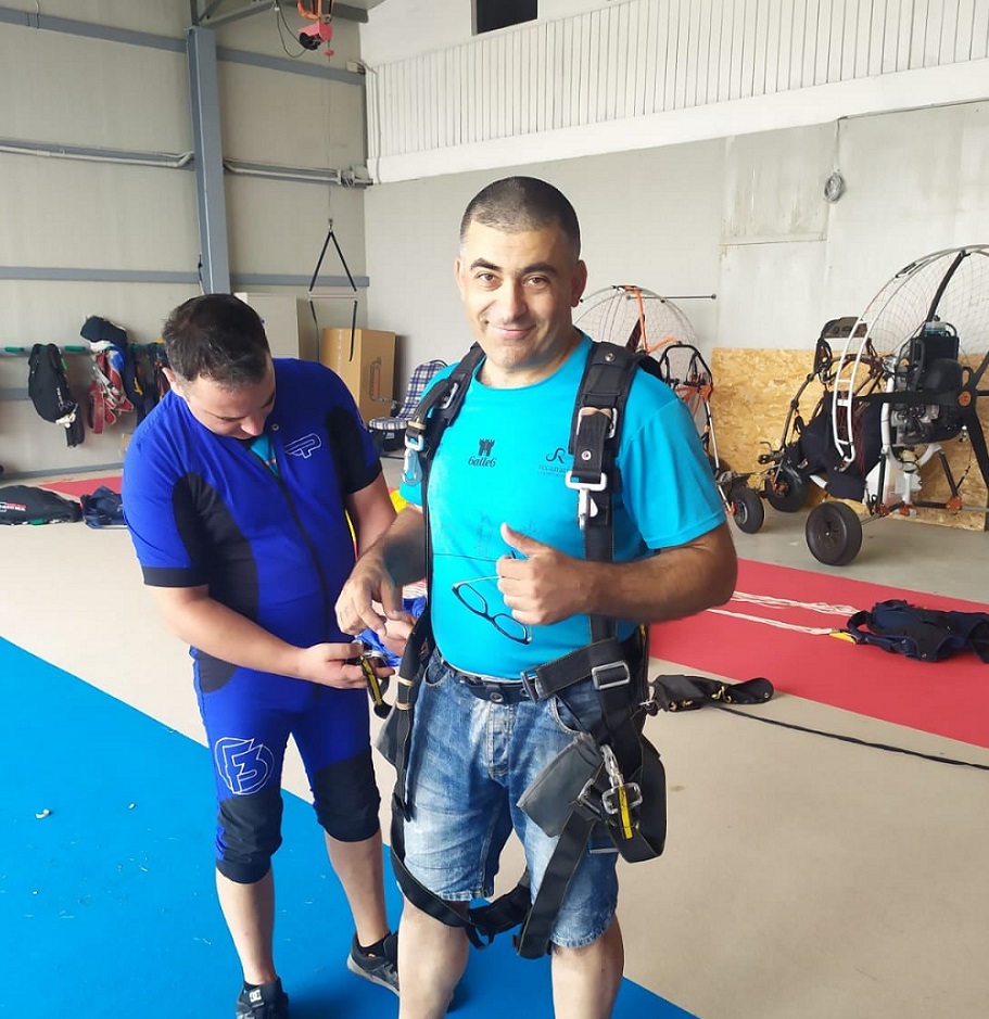 Per fare questa esperienza unica, il consigliere comunale si è affidato alla Skydive Sunrise – Scuola di Paracadutismo Sportivo-Fermo e a seguirlo nel lancio sono stati gli istruttori Antonio e Paolo.