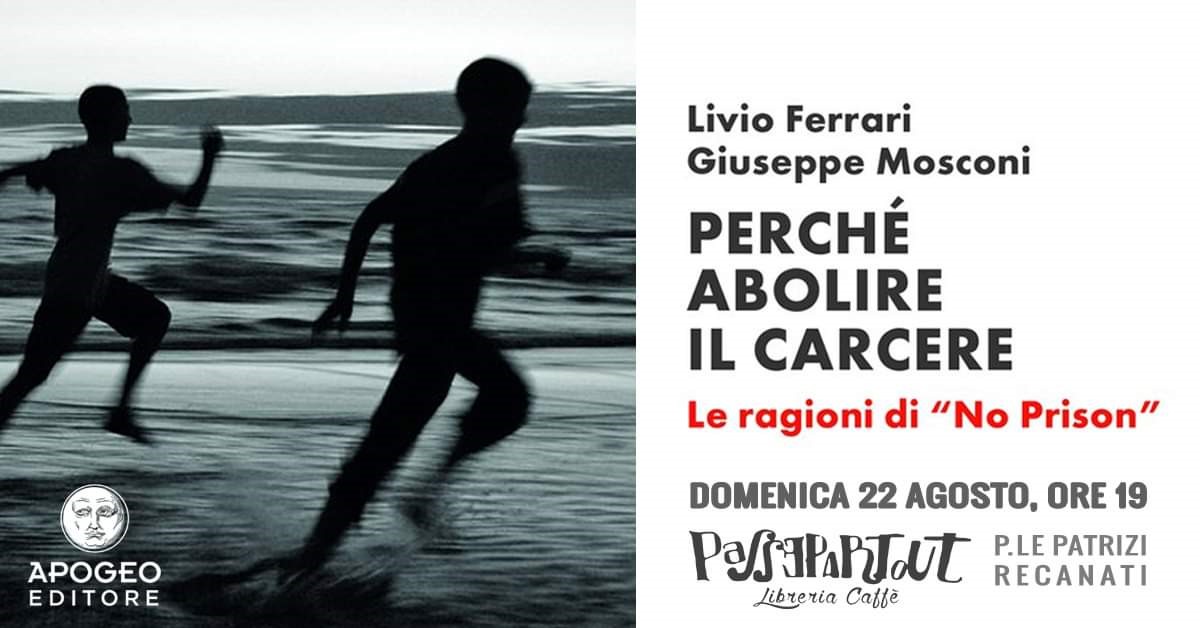 Domenica 22 agosto alle 19 il giornalista e scrittore Livio Ferrari presenterà il  suo ultimo libro “Perché abolire le carceri. Le ragioni di “No prison” (Apogeo edizioni 2021). Dialogherà con lui Italo Tanoni, già Garante dei diritti dei detenuti  ex Ombudsman delle Marche.
