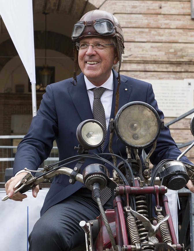 La prima giornata del sabato è stata condizionata dalla pioggia che ha purtroppo fatto cancellare il previsto giro turistico delle colline circostanti per motivi di sicurezza e gli intervenuti da tante parti d’Italia, Lombardia, Piemonte, Toscana, Emilia-Romagna, Lazio, Puglia, Umbria, e naturalmente Marche, hanno potuto visitare a Tolentino l’interessantissimo Poltrona Frau Museum, che ha permesso di conoscere la storia centenaria di un prestigioso marchio, eccellenza produttiva marchigiana apprezzata a livello planetario. Successivamente la rinnovata sede del Teatro Politeama ha ospitato l’incontro culturale sul tema della fondazione della casa Moto Guzzi, che celebra quest’anno i suoi 100 anni, dal titolo “Quando l’Aquila era ancora dentro il guscio”. Il sapiente racconto curato da Luca Manneschi ha calamitato l’attenzione dei presenti, così come la presenza del presidente ASI Alberto Scuro che non è voluto mancare a questa tappa del Circuito Tricolore ed ha portato il saluto ufficiale dell’Automotoclub Storico Italiano.