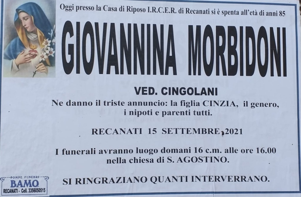 E’ morta Giovannina Morbidoni ved. Cingolani