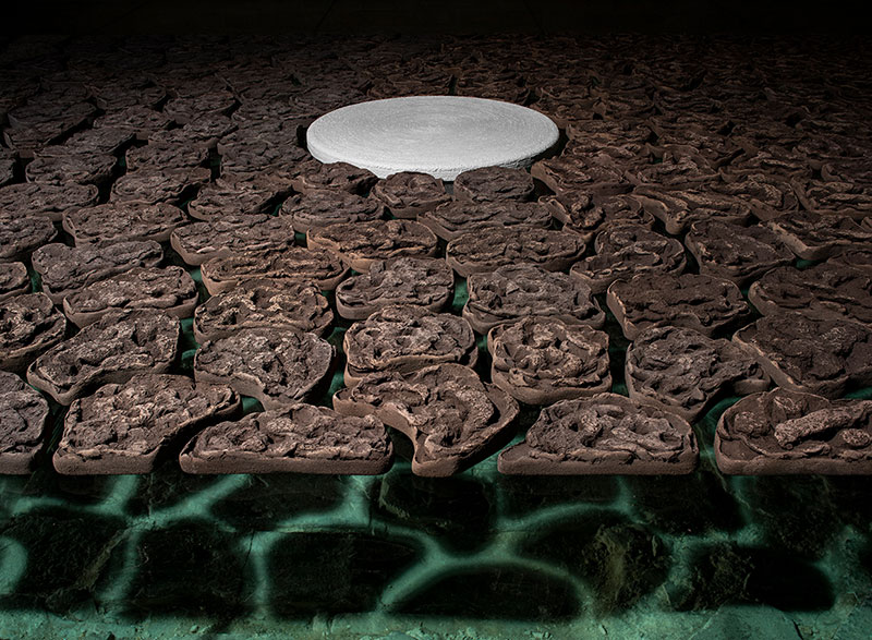 Alle 18 visita alla mostra presso la Torre Civica. Land Tree Project è un’installazione di 6 metri quadrati, inizialmente composta da ben 282 elementi in ceramica numerati e firmati singolarmente sul retro. Tante tessere di un mosaico arido e desertico che sono state create con l’utilizzo di un’argilla pura e non filtrata, denominata Galestro, particolarmente resistente ai cambiamenti climatici. L’opera nasce, oltre che per essere ammirata, per stimolare l’azione di prelevare un pezzo d’argilla, diventando, il visitatore stesso, parte attiva dell’installazione.