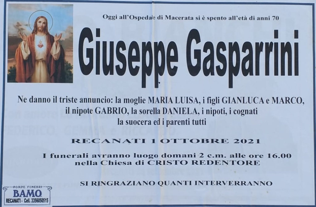 E’ morto Giuseppe Gasparrini