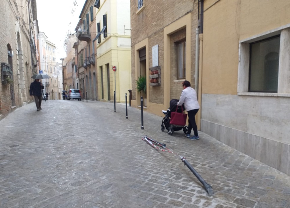 Ma quanti automobilisti frettolosi e distratti conta Recanati? Ad uno ad uno, giorno dopo giorno, quei paletti in ferro, posti lunghi le vie del centro storico cittadino e usati per delimitare il marciapiede, vengono abbattuti come fossero birilli. Questi divisori delimitano la carreggiata destinata ai mezzi in transito dalla parte pedonale per meglio consentire e salvaguardare il passaggio di chi va a piedi. Ormai all’appello ne mancano diversi di questi paletti metallici.