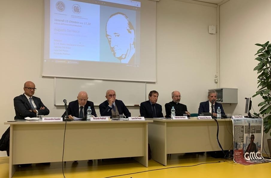 Il confronto, introdotto da Alessandro Guzzini, Presidente Ucid Macerata e coordinato dal prof. Giuseppe Rivetti dell’Università di Macerata, ha registrato la presenza e i contributi di Nazzareno Marconi, Vescovo Macerata; Luca del Pozzo, pubblicista, giornalista e saggista; Riccardo Pedrizzi, Presidente del Comitato Tecnico Scientifico Nazionale, già deputato e senatore della Repubblica per quattro legislature e del giornalista, già dirigente Rai, Fabrizio del Noce, figlio del filosofo.