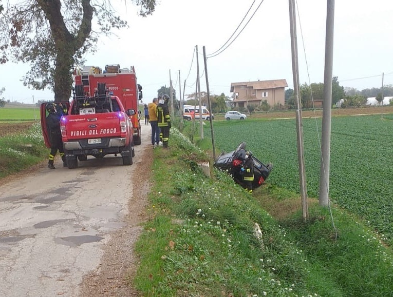 Auto finisce fuori strada ribaltandosi. L’incidente, per fortuna senza tragiche conseguenze, è avvenuto questa mattina verso le 11.30 in località Chiarino. L’auto, una Renault Clio, stava percorrendo via Canepina, direzione Porto Recanati, quando il conducente ha perso il controllo del mezzo ed è precipitato nella scarpata destra della carreggiata. Forse all’origine del fuori strada una mancata adesione delle ruote al bordo stradale sconnesso e pieno di terriccio e sabbia. Sul posto è intervenuta una squadra dei Vigili del Fuoco di Macerata e il 118.