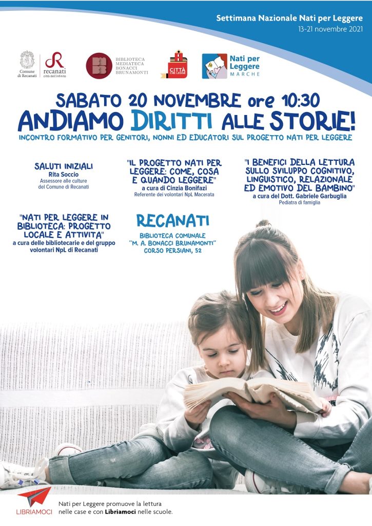Anche quest’anno la Biblioteca Comunale di Recanati “M.A.Bonacci Brunamonti” ha scelto di esserci, partecipando alla Settimana NpL con un incontro formativo rivolto a genitori, nonni ed educatori al fine di sensibiliazzare la cittadinanza sull’importanza della lettura fin dai primi anni di vita.