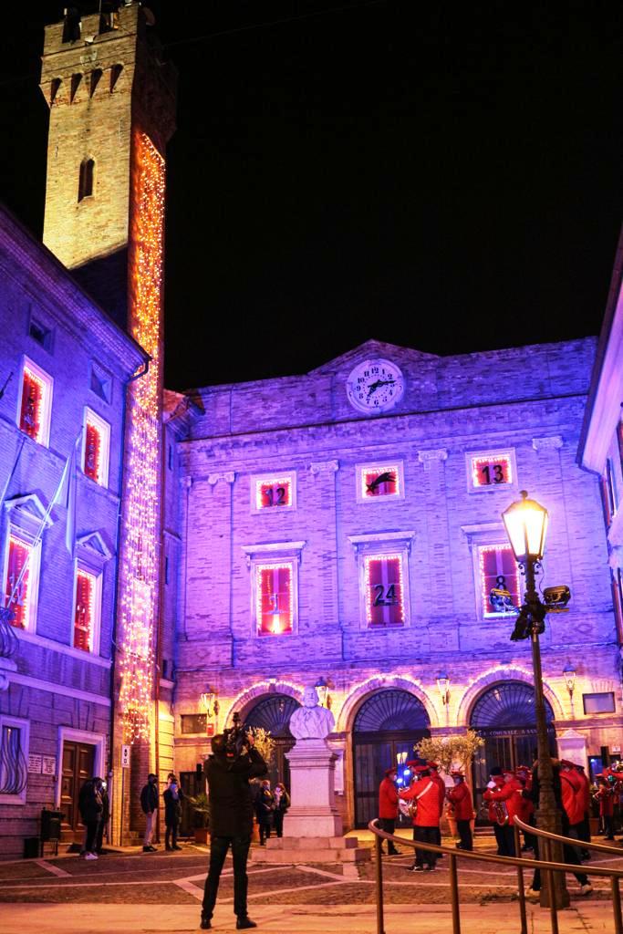 Al via ufficialmente il periodo natalizio a Loreto con il Calendario dell’Avvento. Ieri sera alle 19 (mercoledì 1 dicembre, ndr), l’accensione ufficiale alla presenza del Sindaco Moreno Pieroni, dell’Assessore alla Cultura Francesca Carli e della Banda cittadina. Riprendendo un’usanza tipica del nord Europa ma sempre più diffusa anche in molti comuni italiani, l’Amministrazione Comunale ha deciso di regalare alla città un grande e pubblico Calendario dell’Avvento. Un modo per rendere tangibile l’atmosfera natalizia anche, anzi soprattutto, in questo momento complicato in cui l’emergenza Covid impone ancora grande prudenza, in particolare proprio a Loreto, che nelle ultime settimane ha registrato un aumento importante di casi positivi.