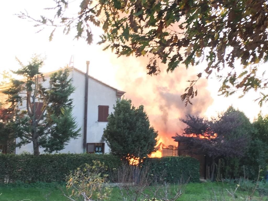 A prendere fuoco un annesso colonico. Le fiamme non hanno creato danni alla casa vicina per il tempestivo arrivo dei Vigili del Fuoco.