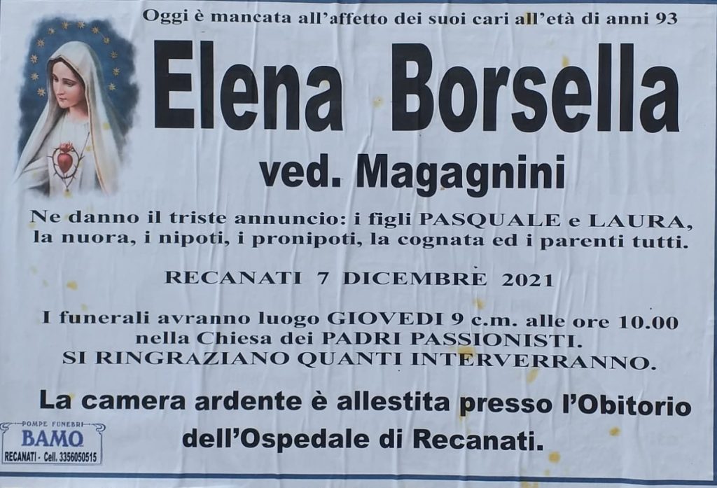 E’ deceduta Elena Borsella ved Magagnini