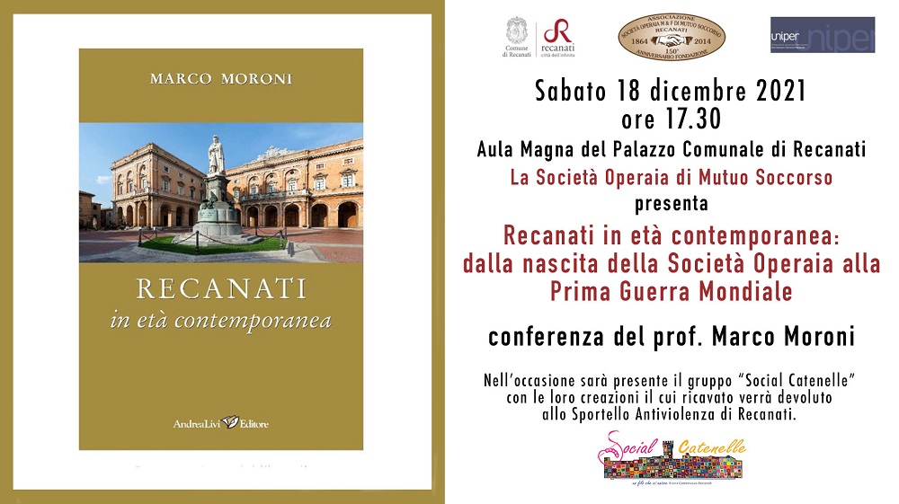 Sabato 18 dicembre 2021 alle ore 17.30 presso l’Aula Magna del Palazzo Comunale di Recanati L’associazione Società Operaia di Mutuo Soccorso organizza la conferenza tenuta dal prof. Marco