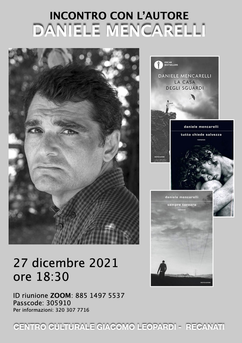 Il Centro Culturale Leopardi di Recanati è lieto di invitarLa all’incontro con l’autore Daniele Mencarelli, lunedì 27 dicembre ore 18.30 in modalità zoom.