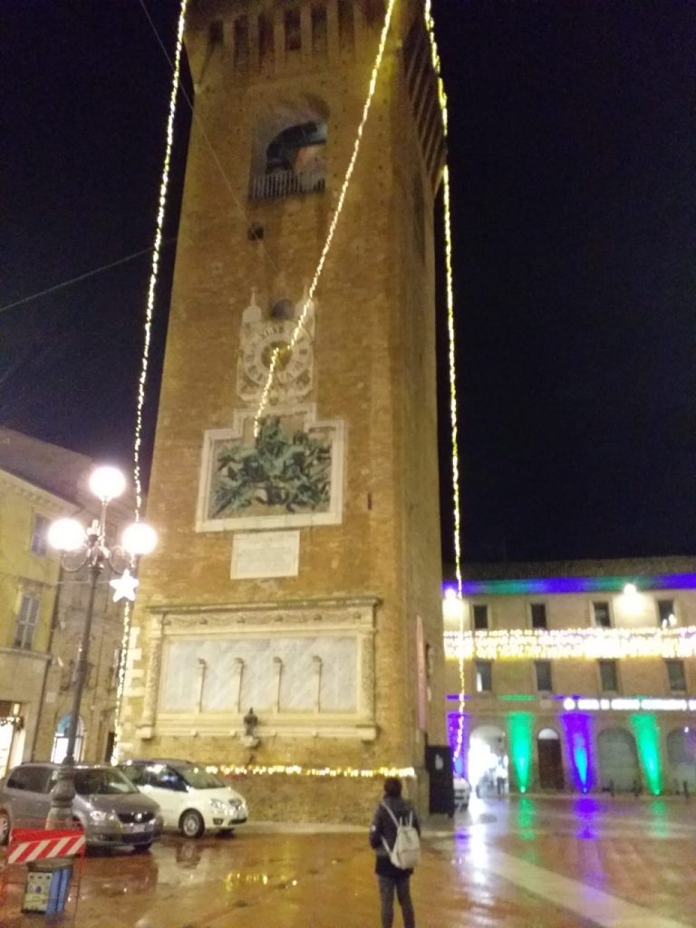 “Viene il vento recando il suon dell’ora….” scrive Leopardi nelle Ricordanze, ma da allora di tempo né è passato parecchio e il vento, purtroppo, ha fatto i guai. Infatti sono alcuni giorni ormai che l’orologio della Torre del Borgo di Recanati è fermo: si sospetta che uno dei fili di luce, installati lungo i lati della torre, proprio a causa del vento ha cominciato ad ondeggiare finché non si è intrecciato con le lancette dell’orologio: erano le 17:32 e le lancette sono ferme su quest’ora.