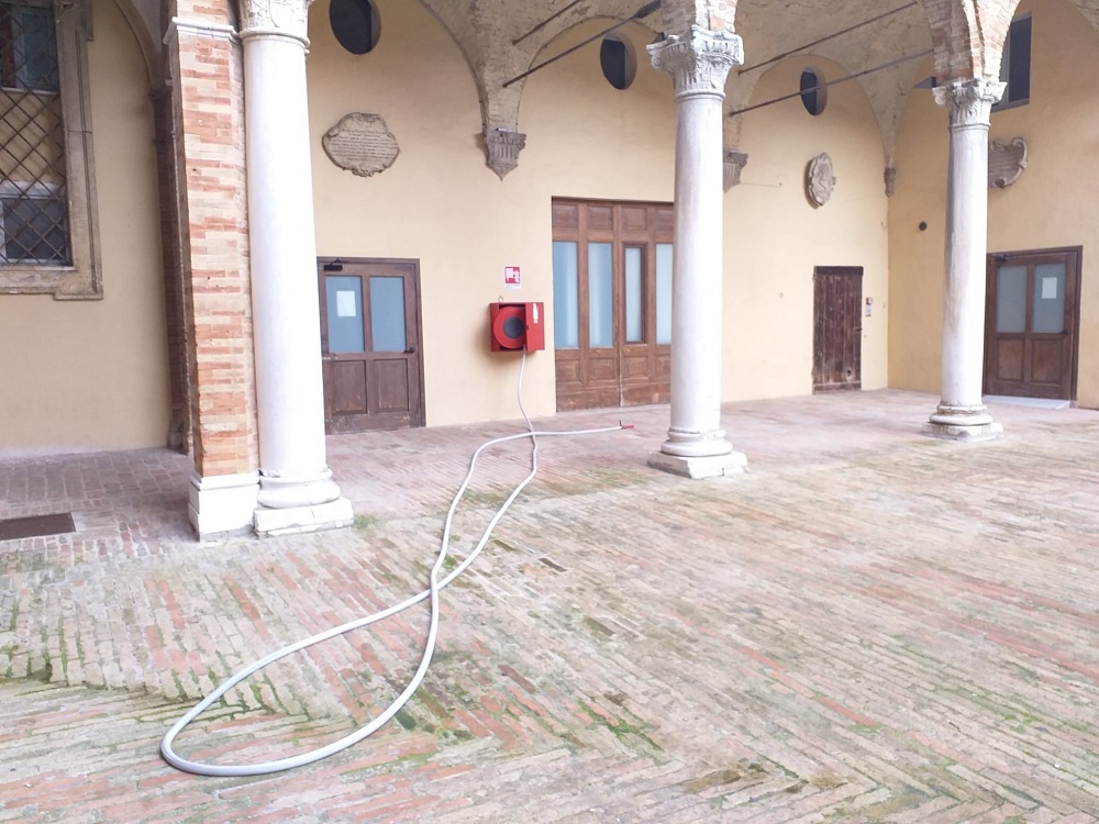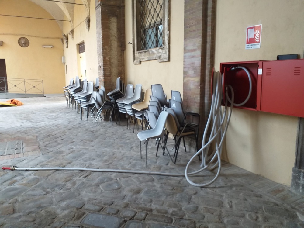 Vandali in azione questa notte lungo le vie del centro storico e nel cortile di Palazzo Venieri. Ragazzacci sono arrivati persino a forzare due cassette antiincendio poste all’interno del cortile di palazzo degli studi. All’ingresso del cortile è stata posta una transenna da parte dei Vigili Urbani per evitare la presenza degli estranei, almeno finché non sarà messa in sicurezza l’intera area.