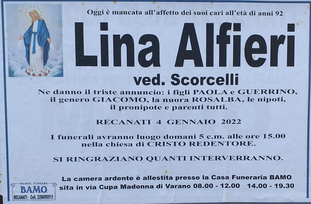 Home » E’ morta Lina Alfieri ved. Scorcelli