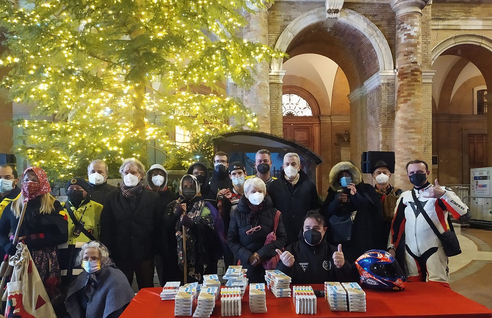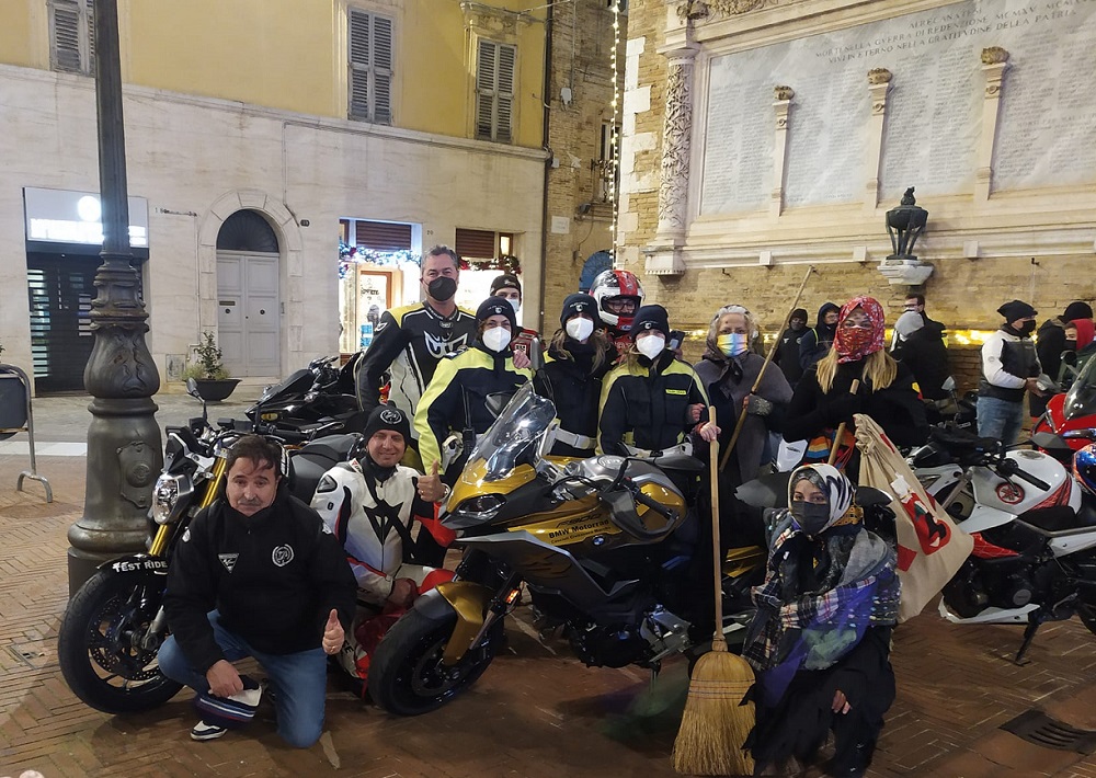 Come era tradizione ogni anno le vecchiette con l’inseparabile scopa era solita scendere dalla torre del Borgo per lasciare i doni ai bambini ma, quest’anno per la paura di vertigini e del vuoto hanno preferito arrivare in sella a delle rombanti moto con i centauri del Moto Club Franco Uncini che con entusiasmo dopo la visita nella mattinata al Salesi di Ancona consegnando doni ai bambini ricoverati, hanno raggiunto la città di Recanati .