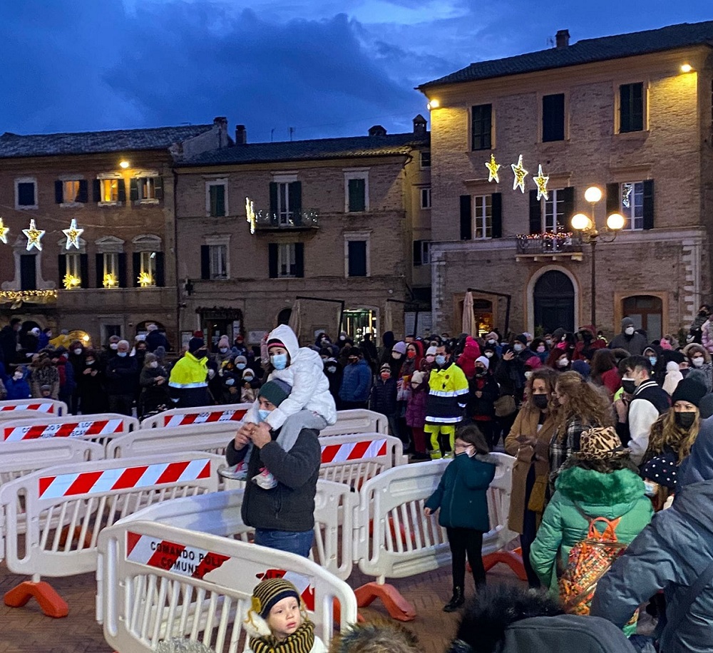Con il saluto del Sindaco Antonio Bravi e il vice Mirco Scorcelli ai bambini e genitori presenti in piazza (nel rispetto delle regole anti Covid ) ringraziando il Moto Club Franco Uncini e la Pro Loco in compagnia delle Befane hanno consegnato le calze e un po’ di gioia ai bambini in questo momento difficile che si stiamo vivendo .