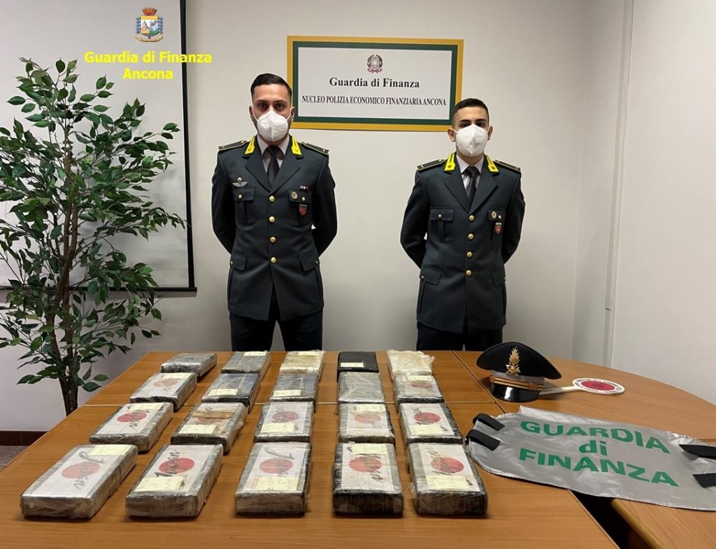 Si comunica, nel rispetto dei diritti dell’indagato (da ritenersi presunto innocente in considerazione dell’attuale fase del procedimento – indagini preliminari – fino ad un definitivo accertamento di colpevolezza con sentenza irrevocabile) che i militari del Nucleo di Polizia Economico Finanziaria di Ancona, alle prime luci dell’alba del giorno dell’Epifania, hanno sequestrato in provincia di Fermo un ingente quantitativo di stupefacente, pari a 21,5 kg di cocaina purissima, e tratto in arresto un cittadino albanese residente in Italia.