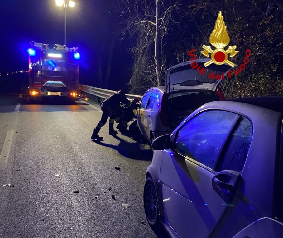 I Vigili del fuoco sono intervenuti alle ore 21 circa lungo la SS 77, direzione mare nei pressi dello svincolo di Pollenza, per un incidente stradale tra due auto.