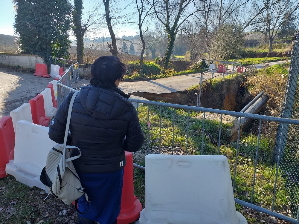 Via Cirfoglio è stata transennata con una segnaletica adeguata dopo la voragine che si è creata all’altezza di Fosso Ricale che ha ingoiato metà della strada. La situazione della strada era stata denunciata domenica scorsa dal consigliere Pierluca Trucchia della Lega e da radio Erre.