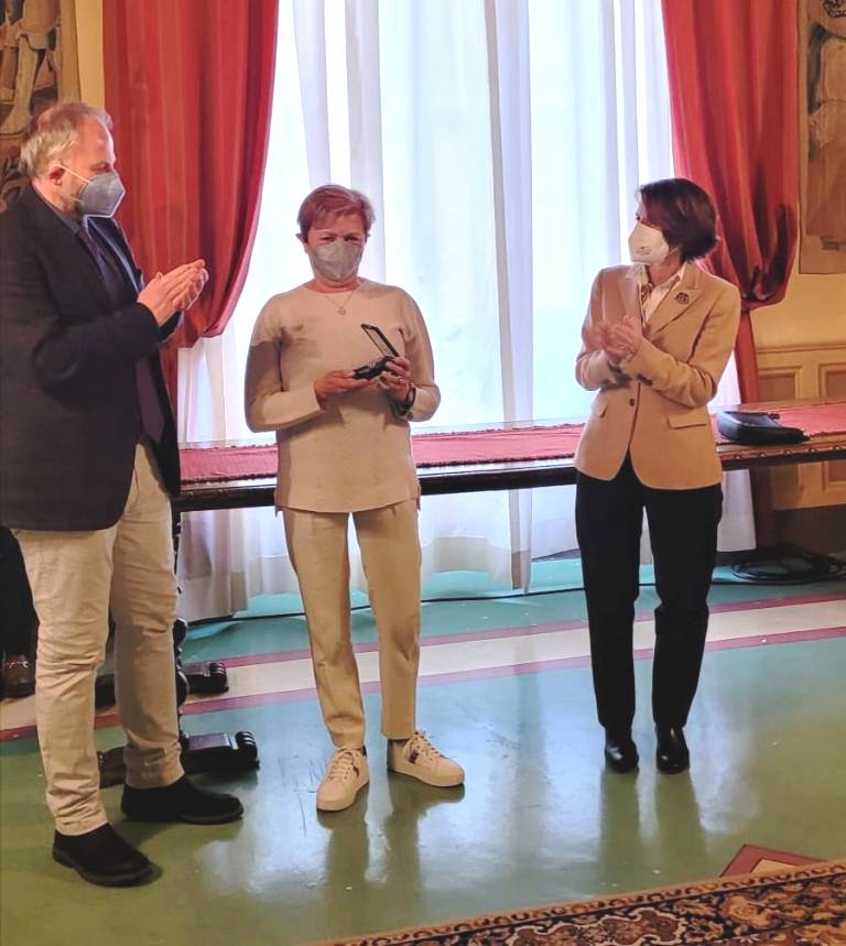 Antonella Verdinelli, ha ritirato questa mattina, in occasione del giorno della memoria, la Medaglia d’onore conferita a suo padre Marino dal Comune di Siena e alle altre persone che come lui sono state catturate e deportate nei lager o in campi lavoro tedeschi.